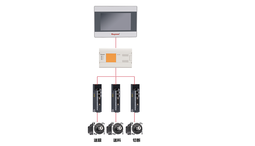 睿能X5系列PLC帶有電子齒輪功能,可實現(xiàn)多軸同步運行;同時自帶旋切功能快,可方便實現(xiàn)定長切割,并保證切割精度。