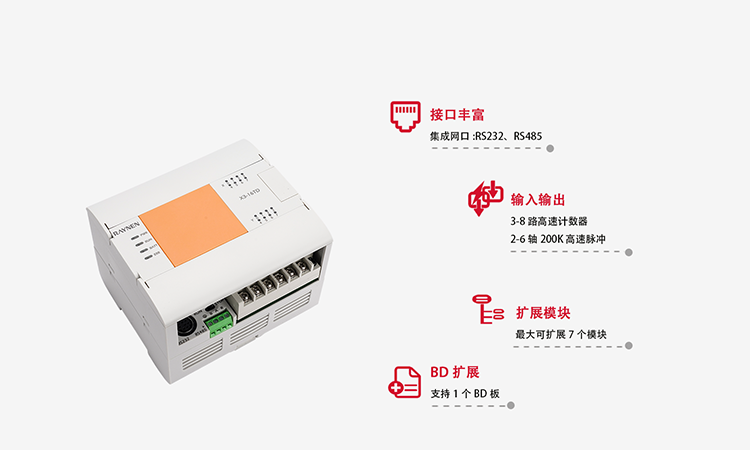▲ 具備2-6 軸高速脈沖輸出,高速計數(shù)、直線插補(bǔ)和圓弧插補(bǔ)等運(yùn)動控制功能